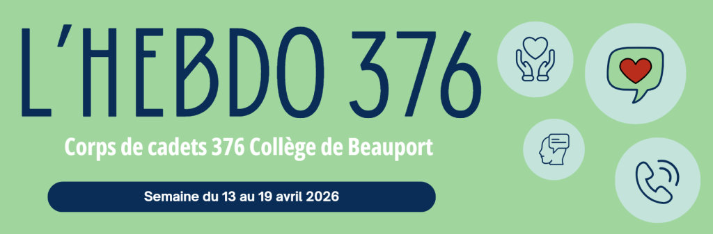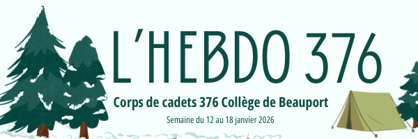 Cette page contient l’infolettre officielle du CC 376 Collège de Beauport, mise à jour chaque semaine. Elle doit être consultée régulièrement par les cadets et leurs parents pour connaître les activités à venir, répondre aux sondages et confirmer les présences.